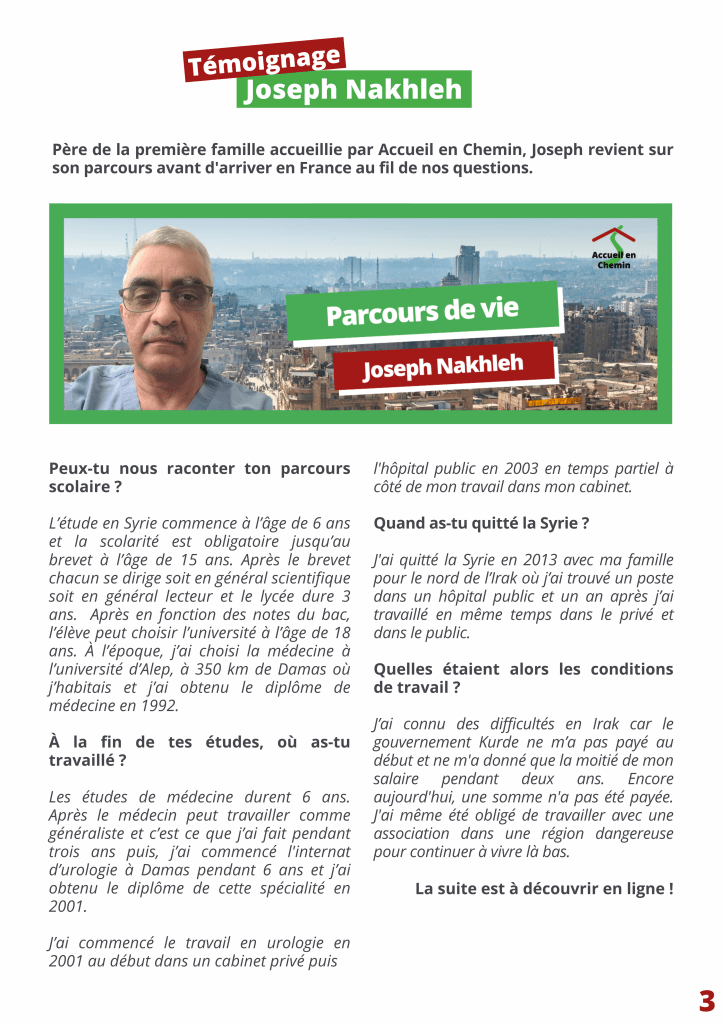 Voici la lettre d’information de l’automne 2022. Cette dernière permet de faire un point sur l’actu d’Accueil en Chemin tout en revenant sur la rentrée des familles qu’elle accompagne. Au menu de cette lettre d’info : un mot de Mary Isaa, un dessin de Shahd, un témoignage de Jospeh Naklheh et bien d’autres actus !